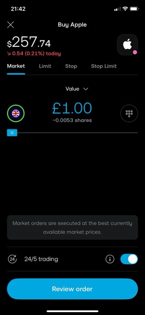 個別株を買うとき、世界的に有名なAmazonやMetaの株を買おうとすると、1株あたり数百ドルが必要になります。しかしTrading 212なら、1株を分割して、最低£1から購入可能。