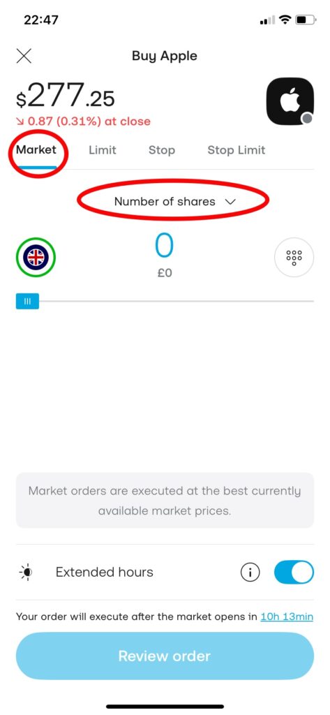 ・Number of shares の横をタップするとValueも選べる